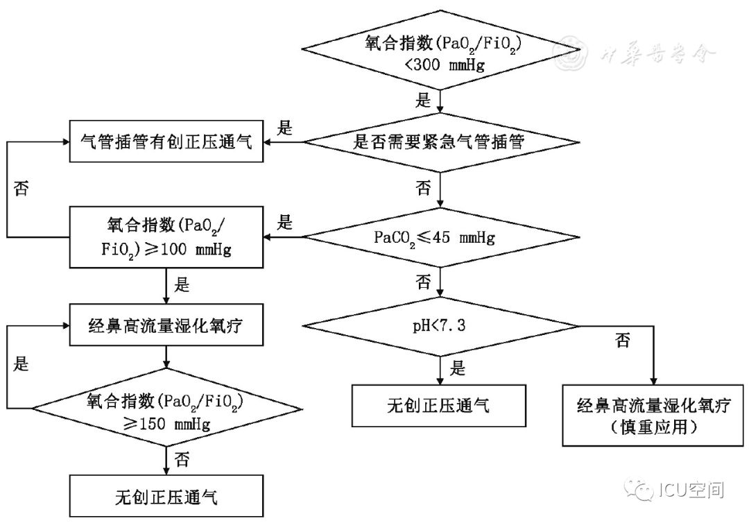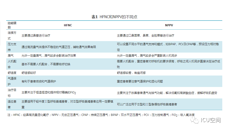 圖1 經(jīng)鼻高流量濕化氧療儀示意圖 人類開始氧氣治療的歷史可回溯到18世紀(jì)后葉,20世紀(jì)初即開始應(yīng)用橡膠制作的鼻導(dǎo)管進(jìn)行氧療[4]。1987年美國研發(fā)了最高流量可達(dá)20 L/min的氧療加溫濕化裝置MT-1000,應(yīng)用于囊性肺纖維化等患者氧療促進(jìn)下呼吸道分泌物排出。近10年來,HFNC進(jìn)入快速發(fā)展和臨床廣泛應(yīng)用階段,國際主流HFNC裝置都是采用無創(chuàng)呼吸機(jī)的工作原理:用空氧混合器進(jìn)行空氧混合,吸入氧濃度(FiO2)為21%~100%,應(yīng)用渦輪提供高流量的氣體,采用呼吸機(jī)應(yīng)用的加溫加濕器和管路加熱導(dǎo)絲對吸入氣體進(jìn)行全程加溫加濕,并通過近患者端實(shí)時監(jiān)測溫度和氧濃度進(jìn)行動態(tài)調(diào)控。另外,部分呼吸機(jī)廠家在有創(chuàng)和無創(chuàng)呼吸機(jī)上設(shè)置了HFNC功能,進(jìn)一步拓展了呼吸機(jī)的臨床適用范圍,這也是未來的發(fā)展方向[5]。國內(nèi)HFNC的歷史僅有5年左右,在前期仿制國外HFNC的基礎(chǔ)上進(jìn)行創(chuàng)新,在很短的時間內(nèi)形成自己的特色,如可自動調(diào)節(jié)和精確調(diào)控FiO2(21%~100%)、溫度控制精度可達(dá)到±1 ℃、呼吸管路采用免消毒氣路技術(shù)等。 二、HFNC設(shè)備的結(jié)構(gòu)特點(diǎn)及其工作原理 (一)HFNC的結(jié)構(gòu)特點(diǎn) HFNC按其結(jié)構(gòu)特點(diǎn)可分為3大組成部分。 (1)氣體的空氧混合部分:其作用是將空氣和氧氣按預(yù)設(shè)氧濃度在渦輪前進(jìn)行混合。氧濃度調(diào)控有2種方法,一種是通過浮標(biāo)式氧氣流量計(jì)調(diào)節(jié)氧氣流量實(shí)現(xiàn)對氧濃度的控制,該方法無法預(yù)設(shè)氧濃度,只能通過調(diào)節(jié)氧氣流量產(chǎn)生實(shí)際的FiO2;一種是微型比例閥和超聲氧濃度傳感器實(shí)現(xiàn)對氧濃度的控制,可以預(yù)設(shè)FiO2。 (2)氣體的加溫濕化部分:其作用是將空氧混合后的氣體進(jìn)行加溫濕化。 (3)氣體的輸送部分:其作用是保證已完成加溫濕化的空氧混合氣體以恒溫恒濕恒流速的方式輸送至患者端。高流量濕化氧療儀與患者連接部分為高流量鼻塞,高流量鼻塞的尖端呈斜面型的出口,質(zhì)地柔軟,用一個具有彈性可調(diào)節(jié)的過耳頭帶固定于患者面部。 (二)HFNC的生理學(xué)機(jī)制 HFNC通過輸送高流速氣體的方式,可以維持一定水平的PEEP,維持肺泡開放,有利于呼氣末肺泡復(fù)張和氣血交換。Corley等[6]通過使用電阻抗斷層掃描(EIT)測量心臟手術(shù)后肺容積的生理學(xué)研究證明了HFNC可促進(jìn)呼氣末肺容積增加,表明HFNC通過高流量產(chǎn)生的PEEP作用促進(jìn)肺復(fù)張。有研究結(jié)果顯示,HFNC流量每增加10 L/min,患者咽腔PEEP就增加0.5~1 cmH2O(1 cmH2O=0.098 kPa)[7]。流量增加到60 L/min時,閉口的女性受試者咽腔PEEP可達(dá)到8.7 cmH2O左右,男性為5.4 cmH2O;張口呼吸情況下女性為3.1 cmH2O,男性為2.6 cmH2O左右。但值得注意的是,由于HFNC允許大量漏氣,患者若張口呼吸必然導(dǎo)致PEEP水平不穩(wěn)定[6]。 HFNC通過為患者提供恒定的、可調(diào)節(jié)的高流速空氧混合氣體,沖刷患者呼氣末殘留在鼻腔、口腔及咽部的解剖無效腔的氣體,可明顯減少患者下一次吸氣時吸入的CO2的含量[8]。M?ller等[9]通過81 mKr氣體測定HFNC對10名健康人鼻咽部和3例氣管切開患者CO2的清除率,發(fā)現(xiàn)CO2清除率和HFNC的氣體流速和佩戴時間直接相關(guān)。 HFNC主要關(guān)注于提供相對精確的恒溫和恒濕的高流量氧療,因而能夠更符合人體生理情況下呼吸道的氣體溫度及濕度,降低醫(yī)用干冷氣體對上下呼吸道黏液纖毛系統(tǒng)功能和黏膜的影響[10]。與普通氧療相比,使用HFNC可以明顯降低患者鼻、口、咽喉的干燥評分,有助于稀釋痰液和排痰,修復(fù)和維持人呼吸道上皮細(xì)胞和纖毛的結(jié)構(gòu)和功能,提高患者的舒適度,降低下呼吸道感染的發(fā)生幾率[6,11] 鼻咽腔通過提供較大的表面積對吸入氣體進(jìn)行濕化和溫化,但同時吸入氣體之間的摩擦?xí)饬鳟a(chǎn)生明顯的阻力[12]。HFNC可以提供滿足患者吸氣流速需求、恒溫恒濕的高流量氣體,患者在吸氣時不需要用力吸氣也不需要對吸入氣體進(jìn)行加溫加濕,這樣不僅降低吸氣阻力,同時避免患者對吸入氣體進(jìn)行溫化濕化所需的代謝消耗,減少患者的呼吸做功[13,14]。而且與常規(guī)氧療輸出的低流量氧氣方式相比,HFNC能提供符合或超過患者所需的吸氣峰流速,減少了吸氣時空氣的稀釋作用,使得吸入氧氣的濃度不會受到患者的呼吸頻率、吸氣流速、呼吸形態(tài)等因素的影響,為患者提供精確穩(wěn)定的吸氧濃度,有利于改善患者氧合[6]。患者低氧狀態(tài)得到改善,呼吸更舒適,自主用力呼吸減弱,加之PEEP作用,呼吸功會隨之降低[15]。 三、HFNC與NPPV的異同點(diǎn) HFNC和NPPV在治療原理上存在許多相似之處。從工作原理上看,都是電動渦輪機(jī)驅(qū)動形成高速氣流,通過電磁閥實(shí)現(xiàn)流量可控,氣流均可加溫加濕,都是傳統(tǒng)意義上的正壓通氣,能夠維持一定水平的PEEP,實(shí)現(xiàn)氣道開放,減少死腔,改善通氣,且允許開放氣道發(fā)生漏氣。HFNC和NPPV的不同點(diǎn)見表1[16,17]。 表1 HFNC和NPPV的不同點(diǎn) 四、HFNC臨床適應(yīng)癥及禁忌癥 由于各研究結(jié)果間的差異[18,19,20],目前HFNC
